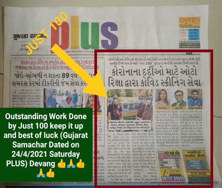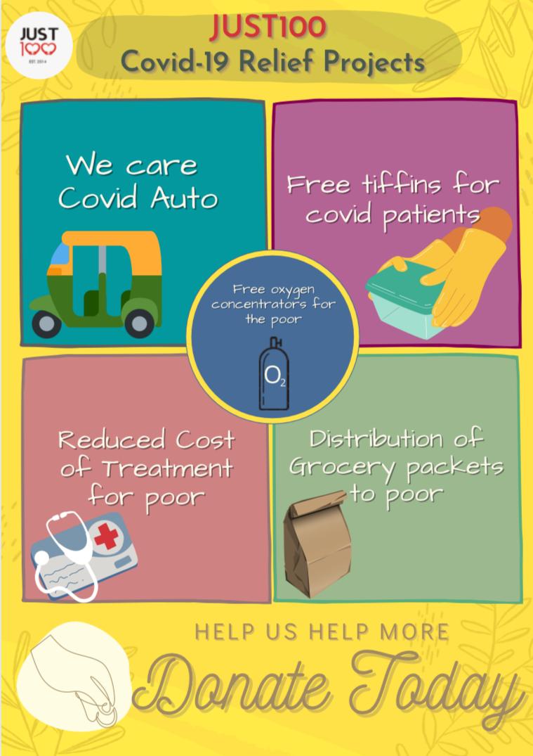 In collaboration with Sanjeevani Healthcare Centre, Just 100 initiated reduced-cost treatments for covid-positive patients with a low-income background.
